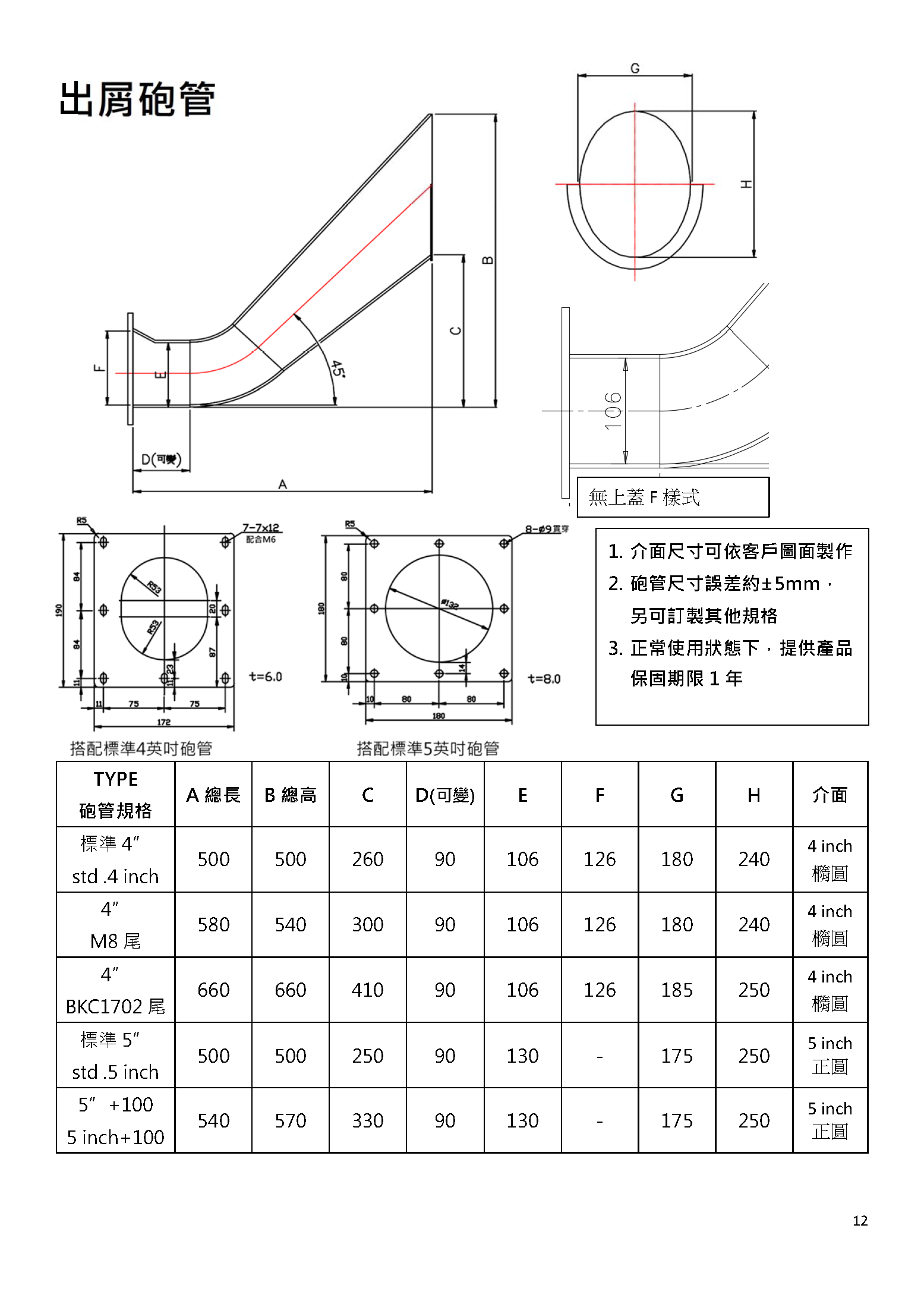 出屑砲管可製作上仰式或直出式,